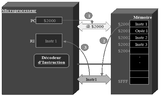 • Lire les instructions dans la mémoire et les strocker dans le microprocesseur.