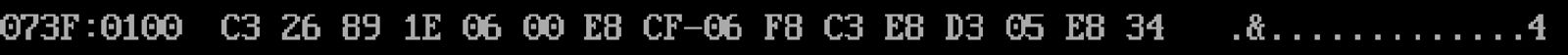 - Le segment de travail identifié est 073F, et l'offset initial est 0100. L'adresse du premier octet décodé est donc: 073F:0100