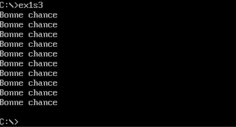 • Ecrire un programme assembleur qui affiche le message « bonne chance » 10 fois. Les messages doivent être écrit un par ligne. Utiliser une procédure « affiche » af qui permet l’affichage.