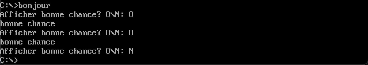 msg_entrer db "Afficher 'Bonne chance'? Entrer 'Oui' si oui : ",'$'