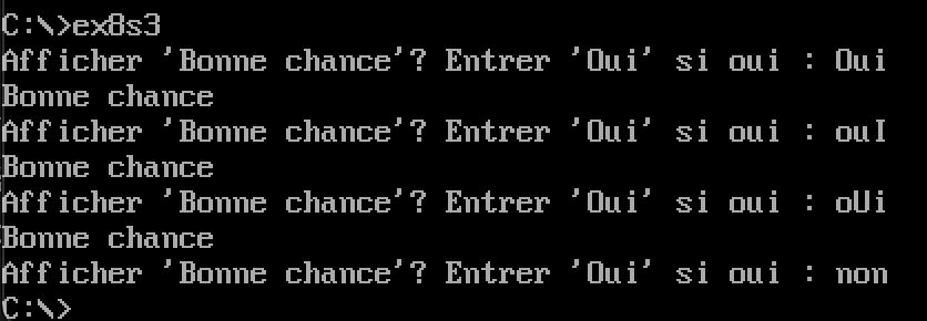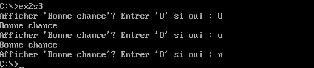 • Ecrivez un programme en assembleur qui demande à l'utilisateur d'entrer 'o' ou 'O' s'il veut que le programme affiche « bonne chance ».